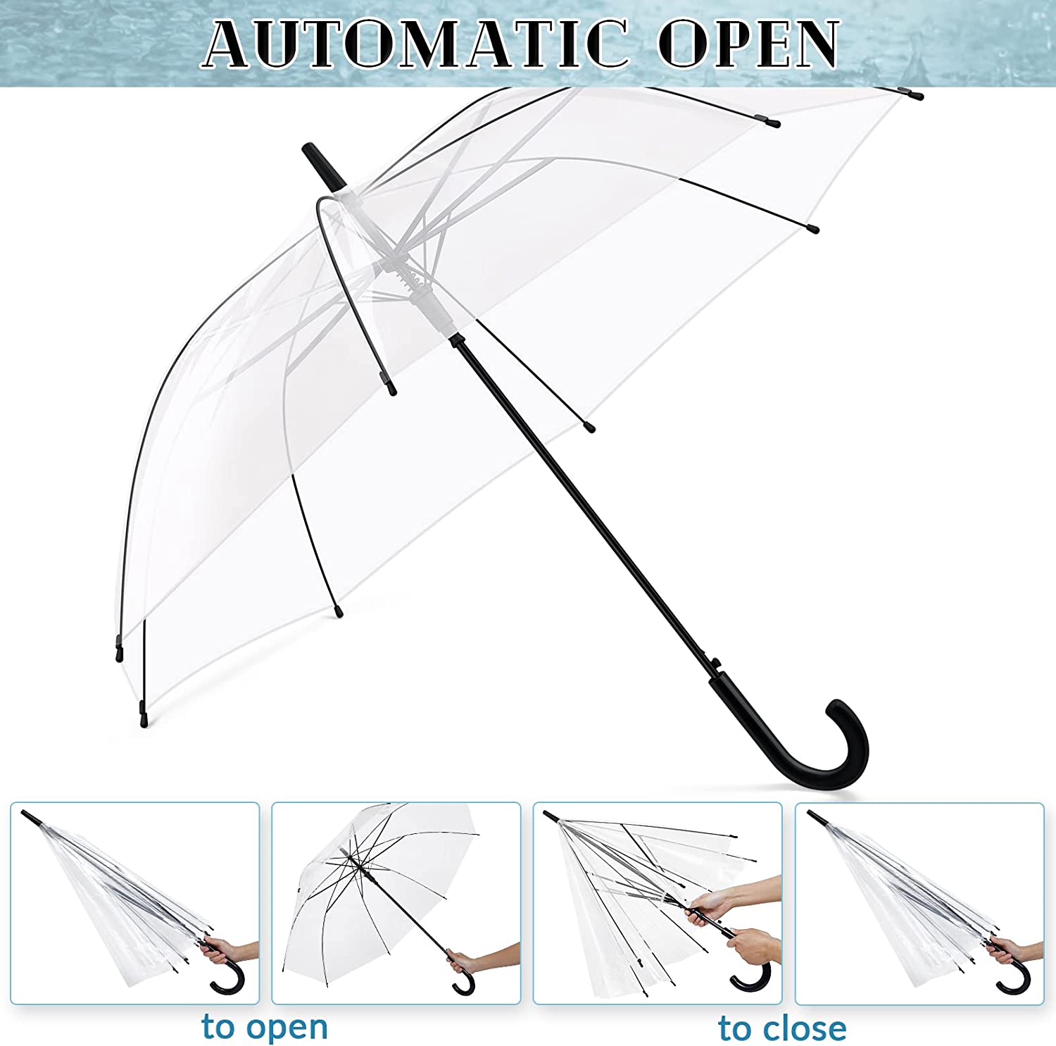 Suitable Size: clear umbrella opening diameter is about 39.37 inches and shaft length is about 32.28 inches providing secure coverage for 2 and more people outdoor wedding style stick umbrella is designed to open automatically there is a button on the handle which can easily open