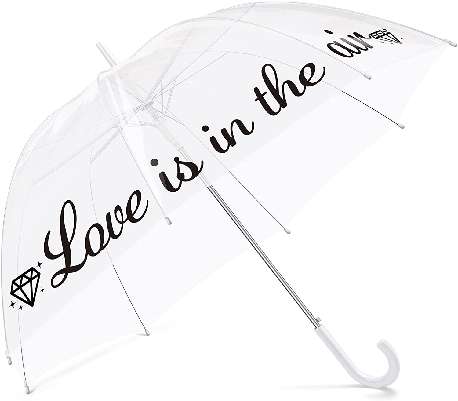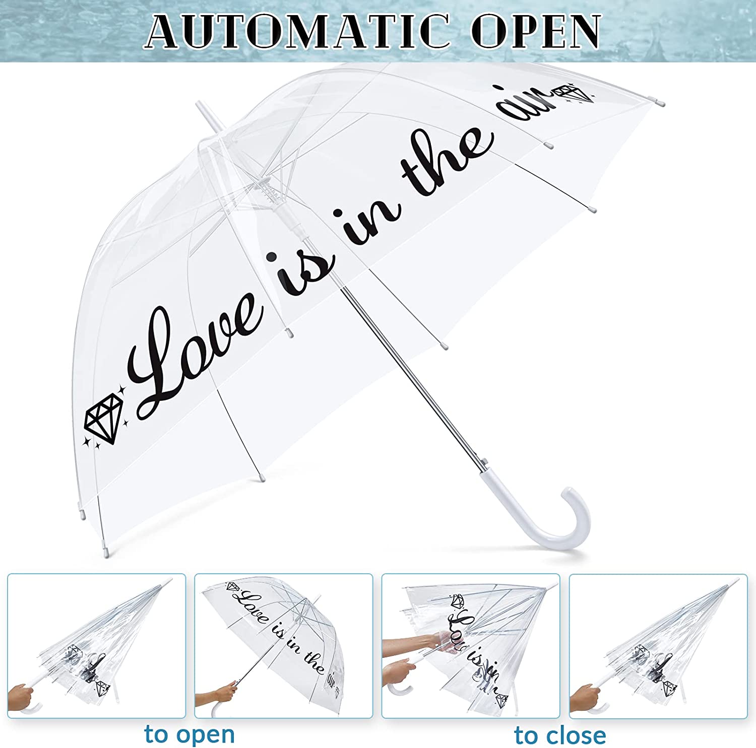 Sweet Words Design: this clear wedding umbrella is printed with the words [love is in the air] to represent your desire and pursuit of happiness; The J shaped handle is easy to carry and can be hung on your wrist or bag