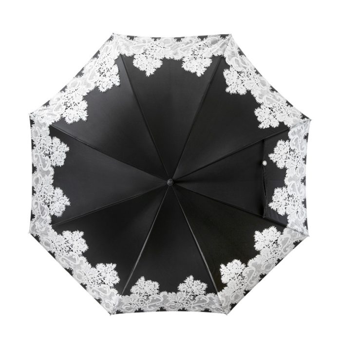 Simpler, umbrellas with a logo imprint mainly fall into the category of our stock umbrellas. Stock umbrellas come in a number of styles and sizes and start out fully assembled. We print and ship our stock logo umbrellas within ten days for a fast turnaround. Of course, there are limitations when printing on finished umbrellas. On a stock umbrella, we print in the center of the umbrella panel towards the bottom of the panel. On a finished umbrella, that is the only area of the panel flat enough to place on the printing press. We are not able to print across the seams or in the center of the overall umbrella on a stock umbrella because the ribs will interfere with the print.Bertha-long umbrella,Ladies curved handle long umbrella