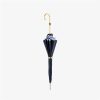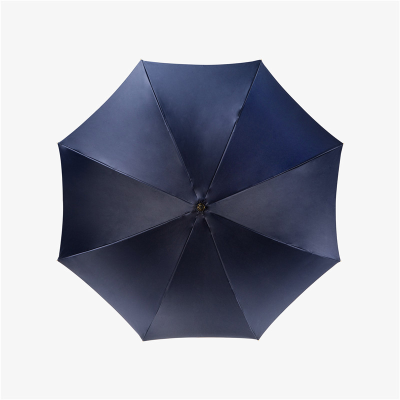 Simpler, umbrellas with a logo imprint mainly fall into the category of our stock umbrellas. Stock umbrellas come in a number of styles and sizes and start out fully assembled. We print and ship our stock logo umbrellas within ten days for a fast turnaround. Of course, there are limitations when printing on finished umbrellas. On a stock umbrella, we print in the center of the umbrella panel towards the bottom of the panel. On a finished umbrella, that is the only area of the panel flat enough to place on the printing press. We are not able to print across the seams or in the center of the overall umbrella on a stock umbrella because the ribs will interfere with the print.Blue swallowtail double umbrella,Ladies curved handle long umbrella