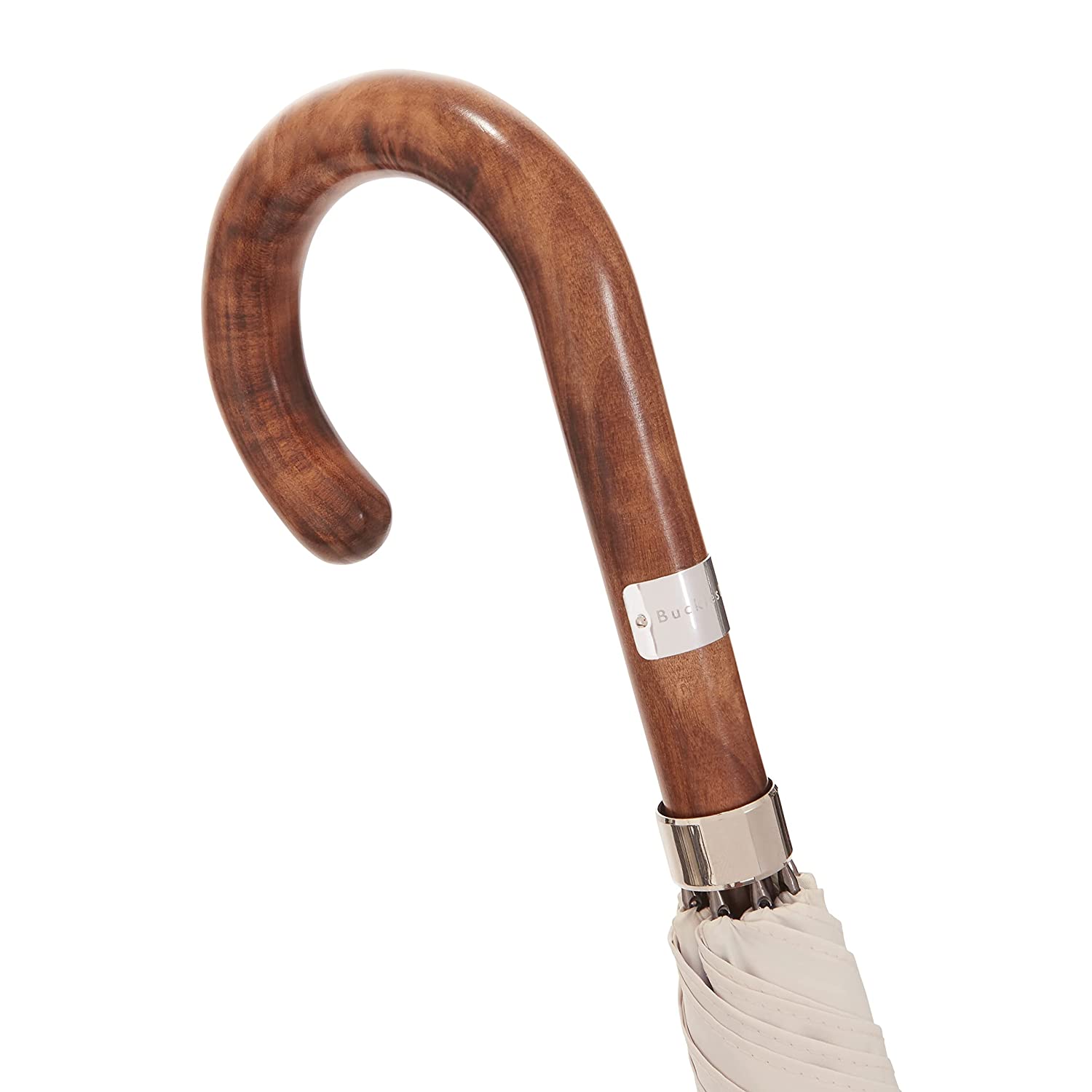 Each polished Maple crook handle is scorched by hand using real flames so that every Custom Wedding Umbrellas umbrella has a completely unique finish.