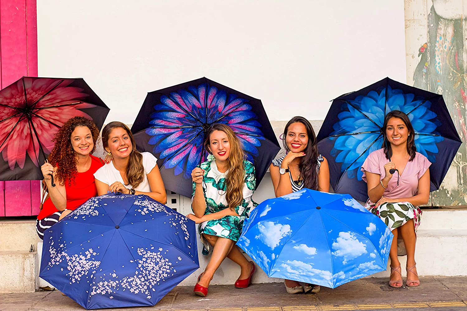 BEAUTIFUL DESIGNS: Don’t settle for another boring black umbrella! Look great for photos & protect your skin in any weather with a stylish cute umbrella kawaii umbrella & parasol umbrella! Finally rain umbrellas & UV?umbrella for rain in modern designs! PERFECT SIZE: Golf Umbrellas are too large a pocket umbrella is too small. This large umbrella folds to fit in your purse! Instead of clear umbrellas for rain choose a stylish cute umbrella and paraguas para lluvia y viento!?