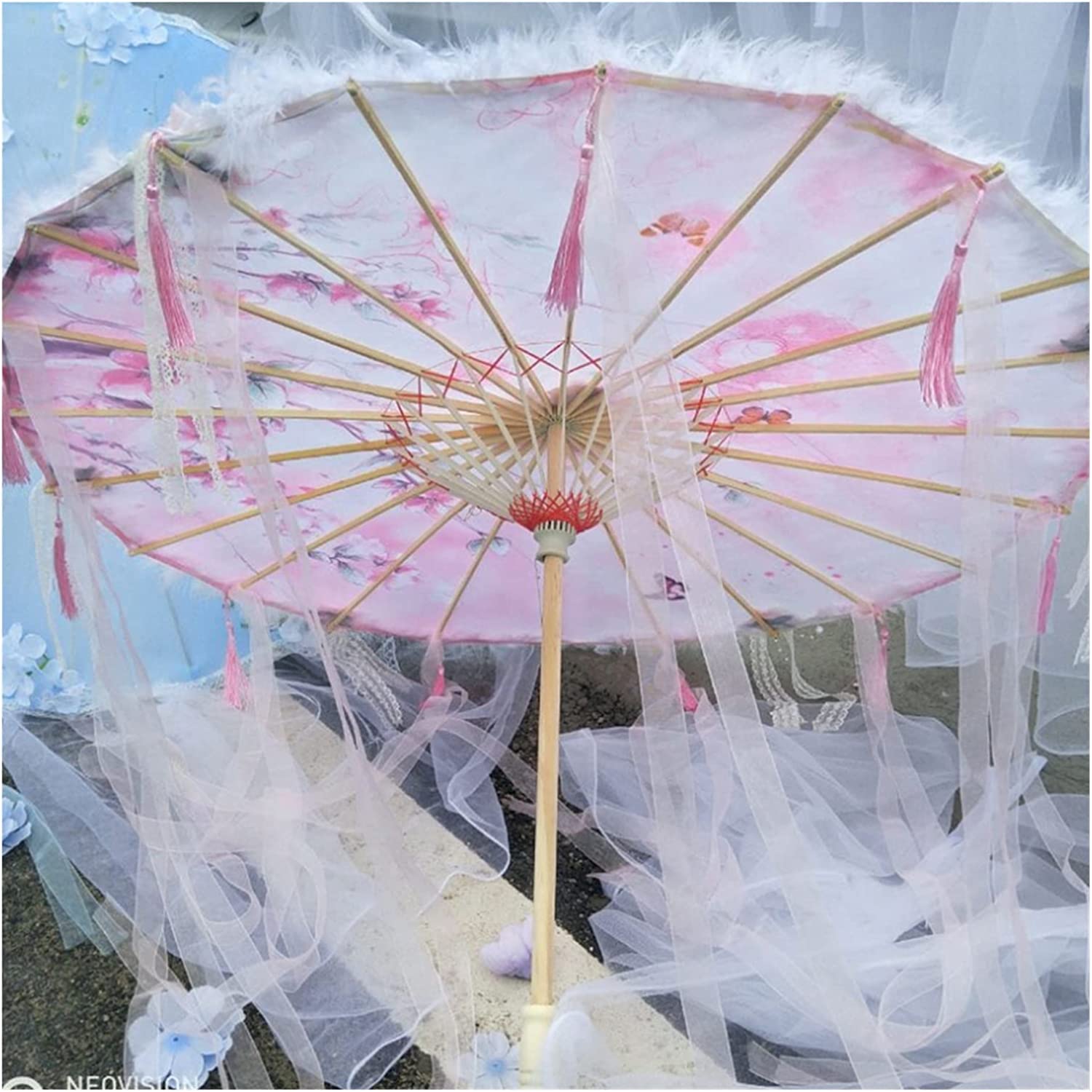 CUJUX 82CM Tassel Ribbon Parasol Lace Dance Decoration Photography Wedding Hanfu