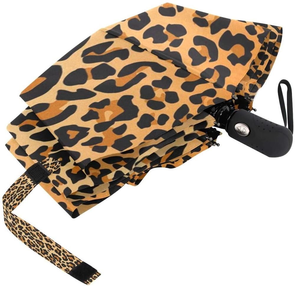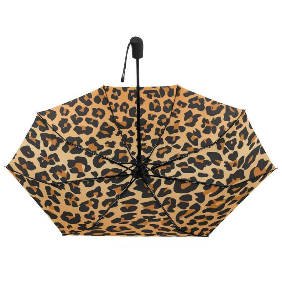 Custom 21-Inch 8-Rib Leopard Print Auto Open Close Folding Umbrella for Women