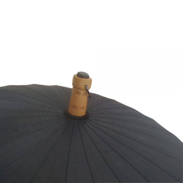 Custom Design 24 Ribs Umbrella with Branded Logo, 24pcs Fiberglass Ribs, Wood Top, Wood Shaft, Wood Handle. Custom Branded Logo on Outer Layer, Full Design Printed on Inner Layer.