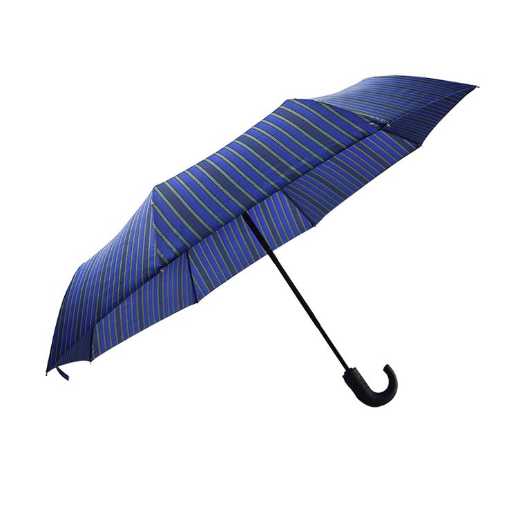 Custom Blue J-Hook Travel Umbrella with Auto Open/Close