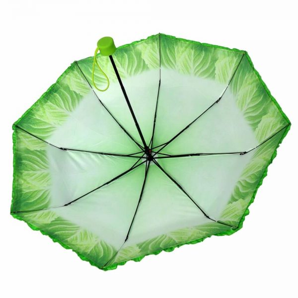 Design Cabbage Printing on Umbrella Canopy, Green Fabric Sewn Edges is Used as Cabbage Leaves. Custom Design Cabbage Umbrella with Brand Logo Printing.