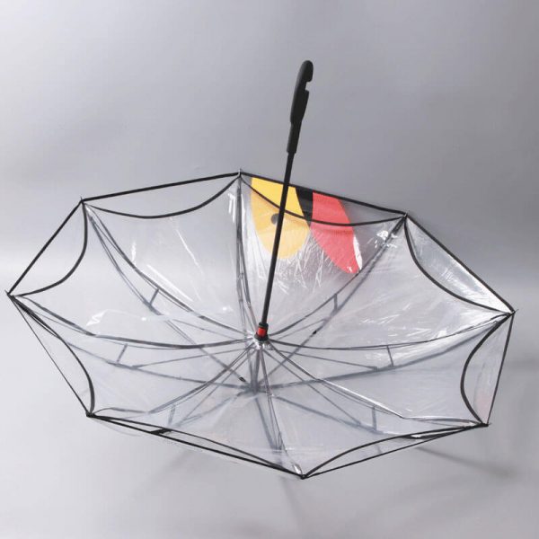 Custom Design Printed Clear Inverted Umbrellas with Branded Logo from China Youchi Factory, C Shape Handle, Double Layer Canopy, Design and Branded Logo Can Be Printing on Both Layer.