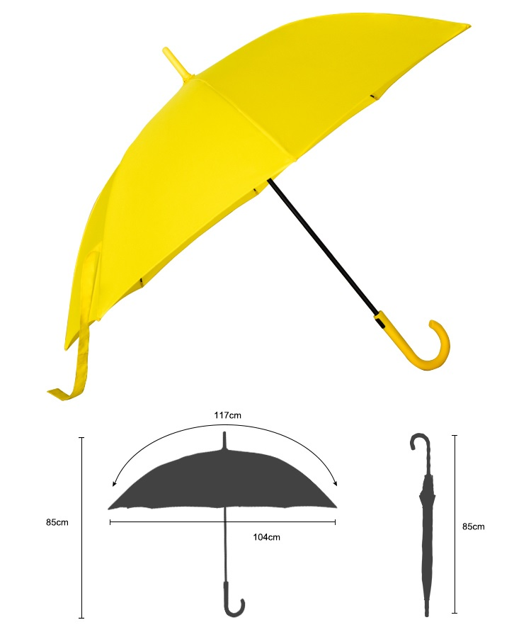 | Name | Yellow Customized Promotion Colorful Fiberglass Ribs Pongee Auto Open Stick Umbrella |