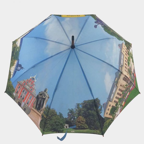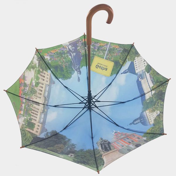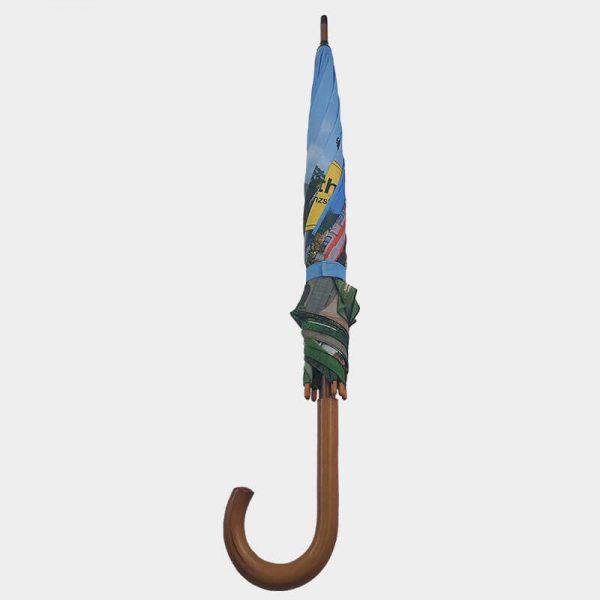 Custom Design Curved Umbrella with Branded Logo Printing, Curved Handle Material: Wood, Plastic, Aluminum, Iron, Leather.