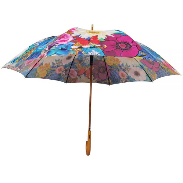 Custom Flower Printed Umbrella with Wood Frame, Logo Printed on Umbrella Handle, Many Different Umbrella Frame Choose.
