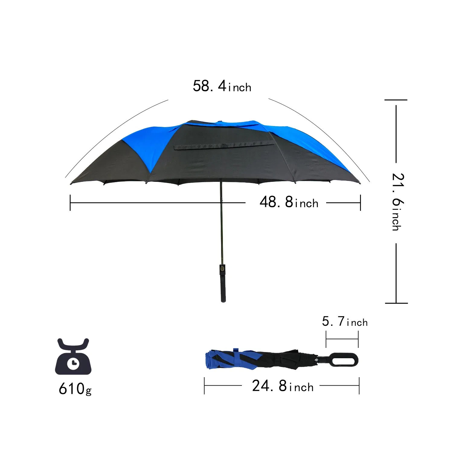 Fiber frame and Metal shaft fiber ribs , Auto Open, Manual Close |