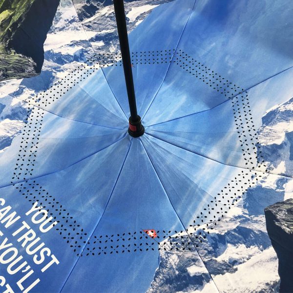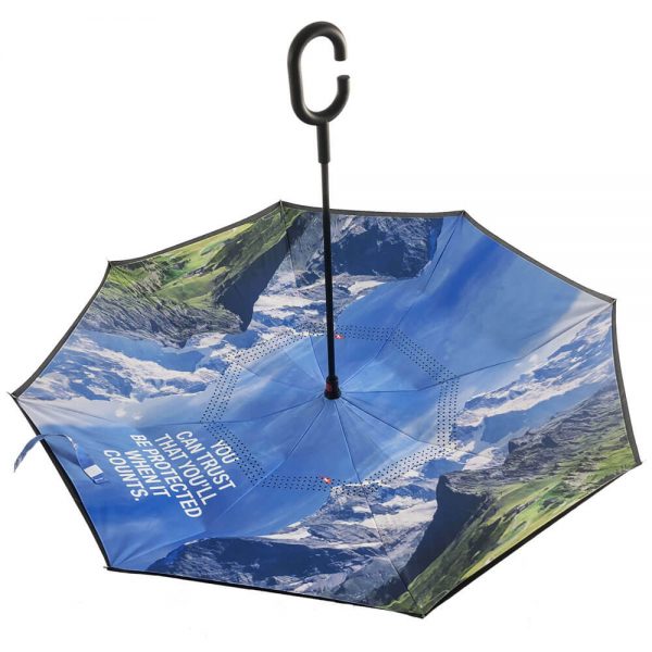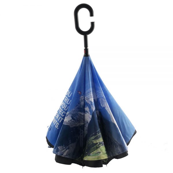 When the Umbrella Close, The Inside Layer will be Outside. Custom Design Inside Out Umbrella with Printed Logo. Low Minimum Quantity.