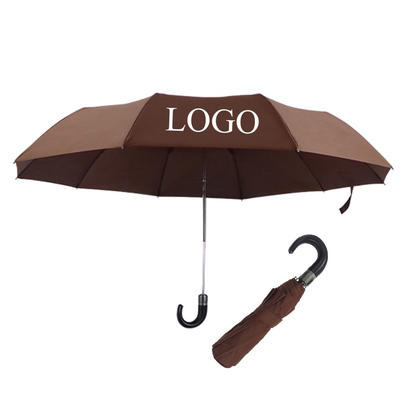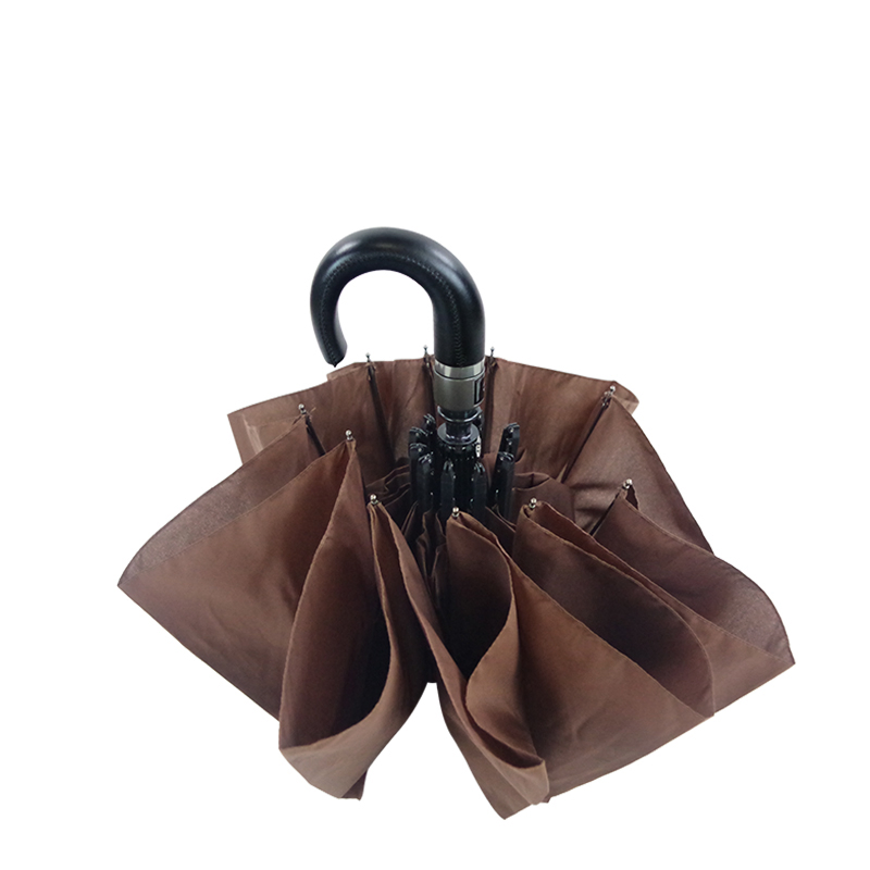 Custom Large Leather Handle Automatic Folding Umbrella for Outdoor