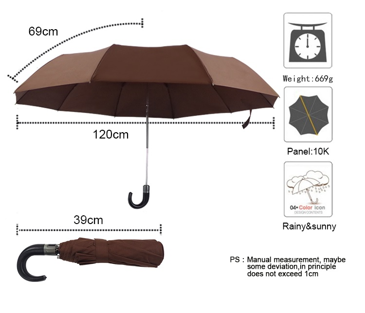 | Name | Leather handle umbrella PU leather handle customize extra big size folding windproof compact umbrella with auto open and close |