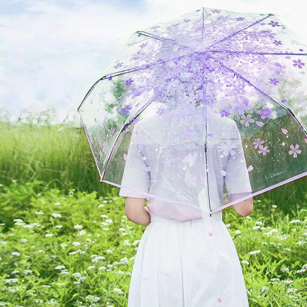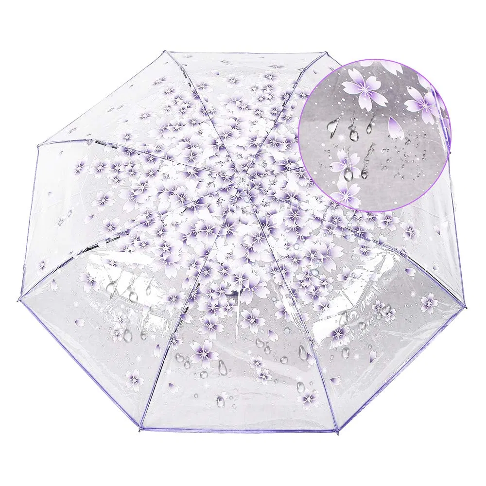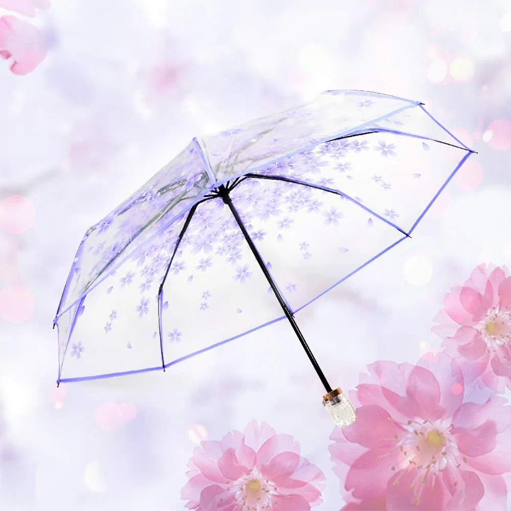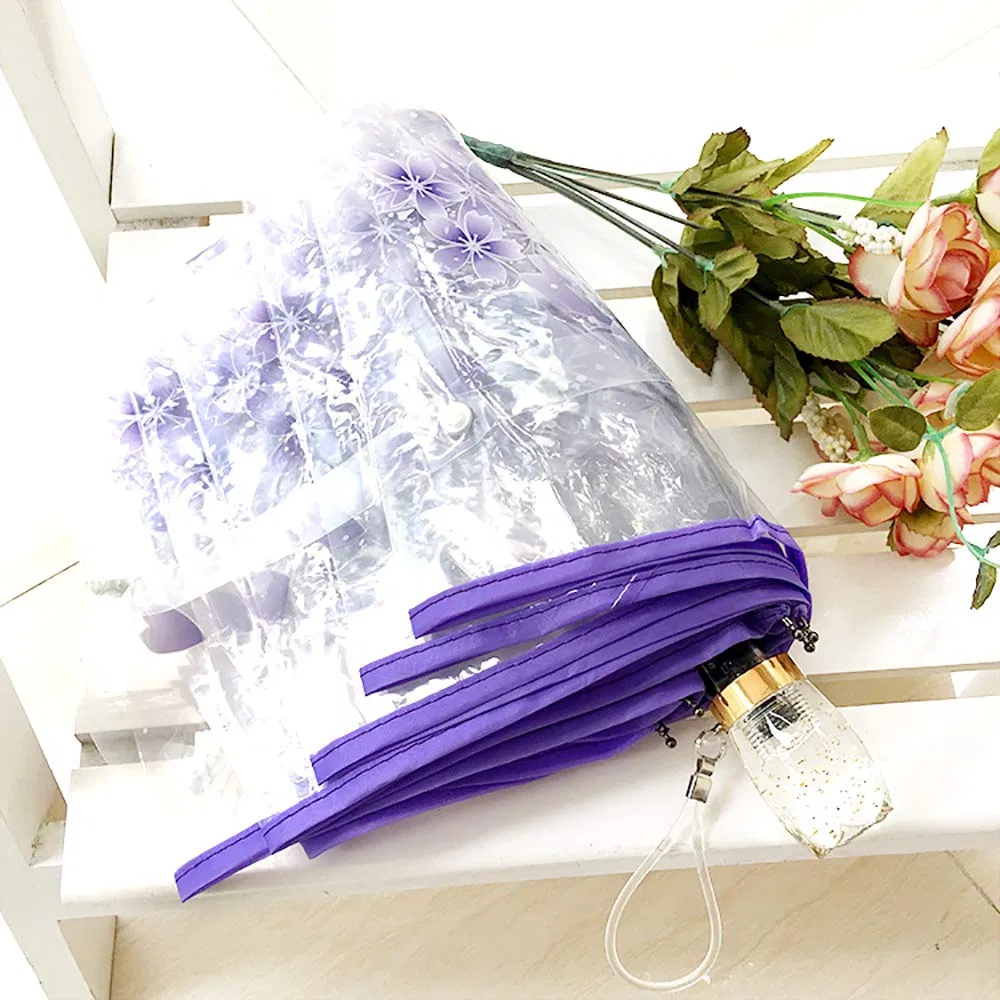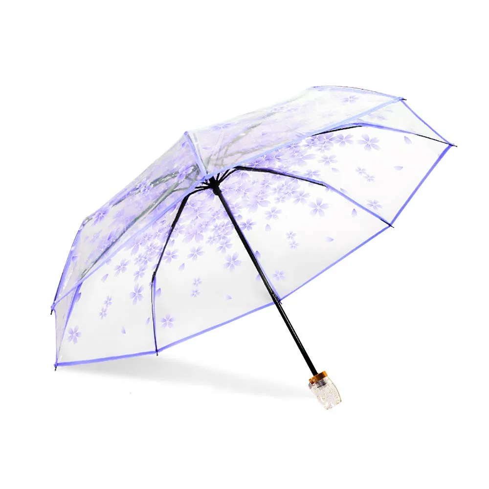 Custom Logo 21-Inch 3-Fold Clear Plastic Umbrella for Women & Kids