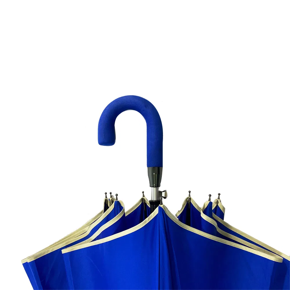 | Name | Hot Sale Blue EVA J Shape Handle High Quality Custom Logo 27 Inch Automatic Open Stick Golf Umbrella for Outdoor |