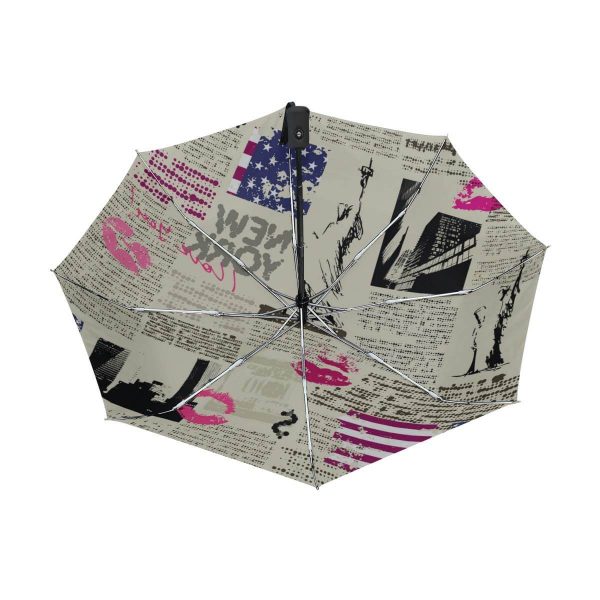 Custom full newspaper print umbrellas from China Youchi Umbrella Factory, Compact Travel Umbrella with Auto Open Close for Women Men Rain Protection.