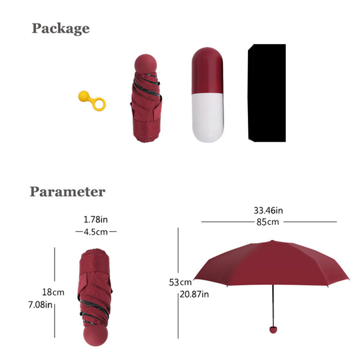 | Name | Wholesale Cheap Price Outdoor Advertising 6 Panels Sun Mini 5 fold Black Vinyl Coated anti-uv umbrellas capsule umbrellas with case |
