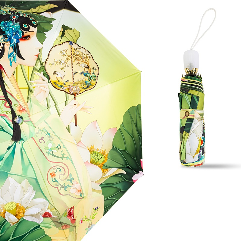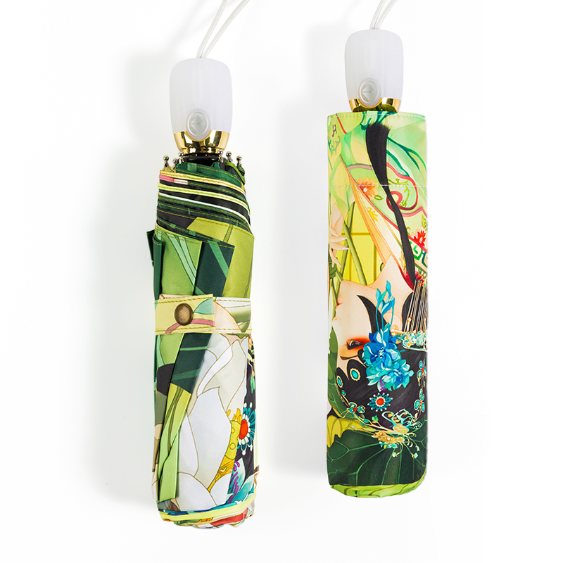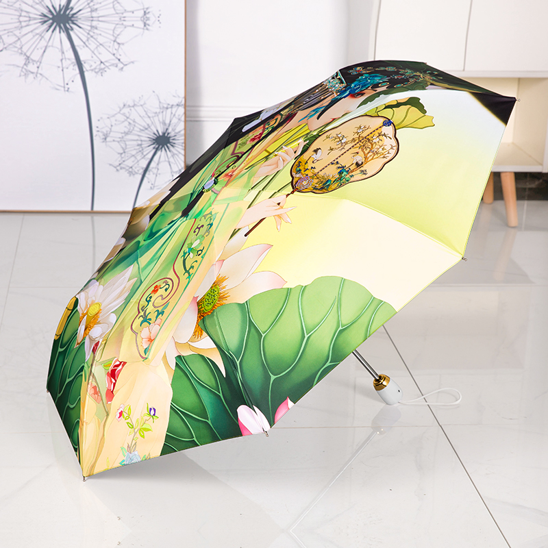 Custom Printed Silver Coated Folding Umbrella for Women