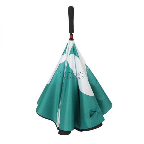 Reverse Open Close Umbrellas that Open Backwards, Closes Upside Down. Custom Design Reverse Open Umbrella with Branded Logo. Logo Can be Printing on Outer or Inner or Double Layer Canopy.