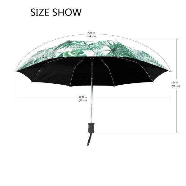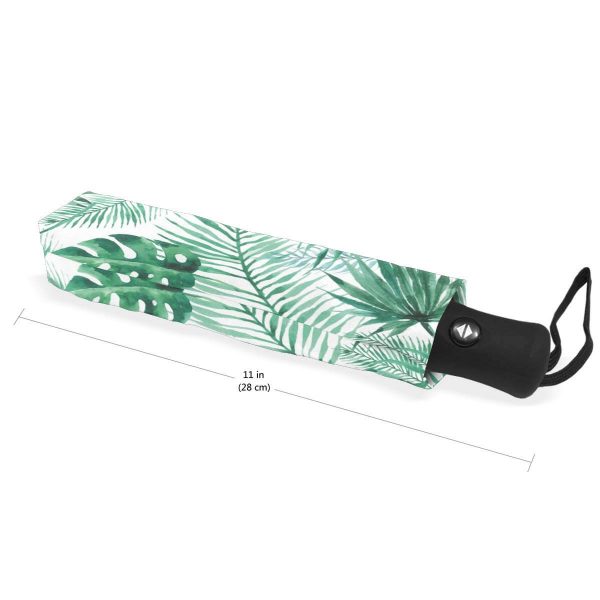 Green Palm Leaves Printing, Custom Design Tropical Print Umbrellas with Branded Logo, Sunscreen Anti UV Black Coating Fabric