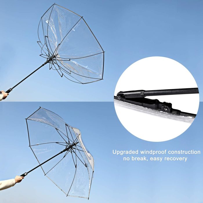 Pure canopy black fiberglass support the 62 inch transparent rain umbrella looks nice and fashionable.
