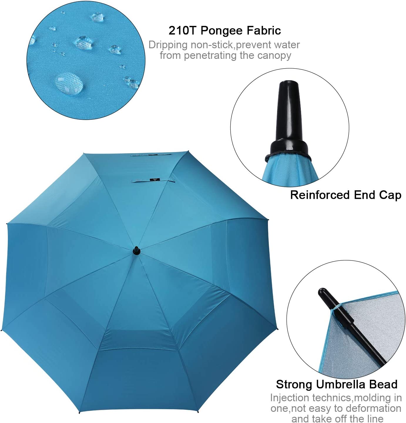 ? DURABLE WINDPROOF DOUBLE CANOPY: Double vented canopy design prevents the umbrella from inverting during high winds and makes it easy to hold in harsh conditions. The wind will pass through the gap without breaking the umbrella or rain leaking.