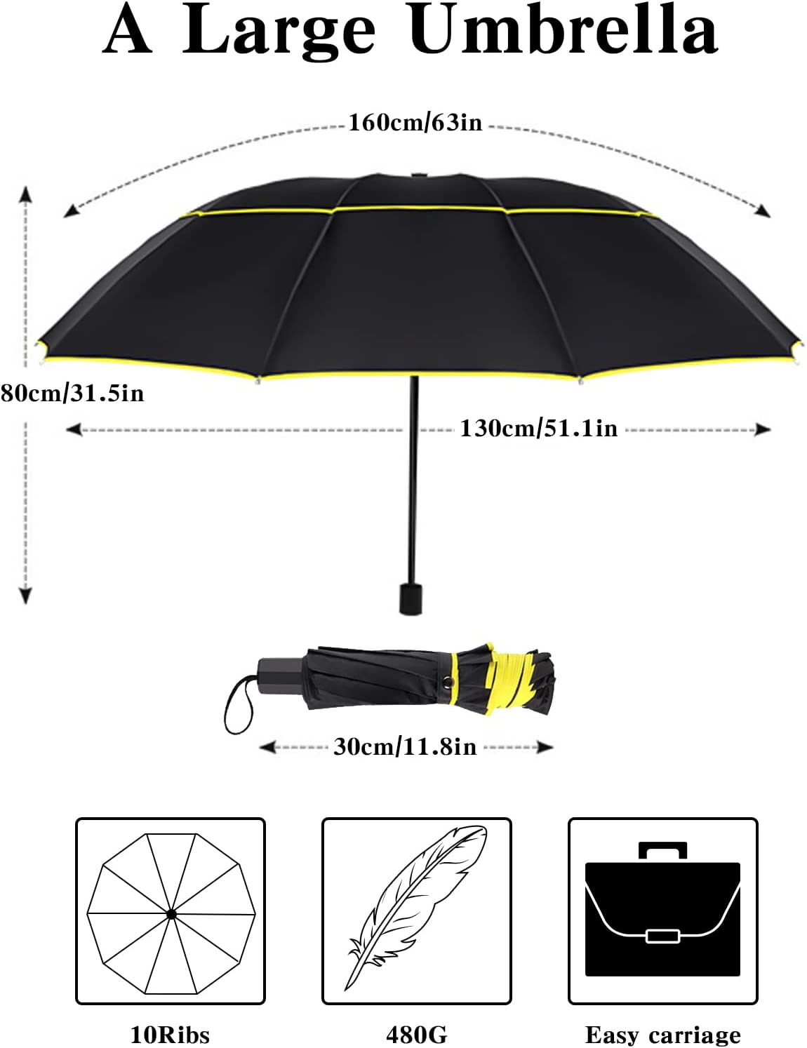 62-inches Oversize: Large oversize canopy and heavy duty design large compact umbrella is an ideal companion for golfers the business professional or for daily life. The travel umbrella shelter you well from the sun and rain.