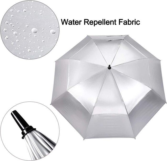 【UV Protection Umbrella UPF 50+】Custom umbrella 68 inch UV golf umbrellas are made of 210T high-density pongee cloth interior and silver coating fabric exterior. The UPF 50+ rating helps block out 99% of UVA and UVB Rays. Protecting you from aging and wrinkles from the sun.
