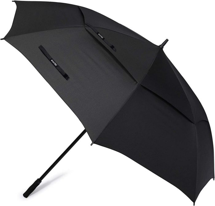 Choose Custom umbrella. The 72-inch large umbrella not only fits a 6′ tall adult male or female but to share with a friend. The extremely sturdy construction and vents allow it to hold up in the wind. Carry a sleeve with straps convenient to carry.