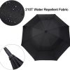 [Well-built construction & double canopy] For the umbrella support and shaft we use fiberglass lightweight and not easy to break. The double canopy vented design lets wind pass through not flip inside out easily. The canopy uses ultra-water resistant 210T pongee fabric. Easy to dry. This silk-derived material is lightweight and water-resistant.