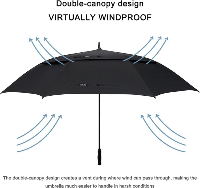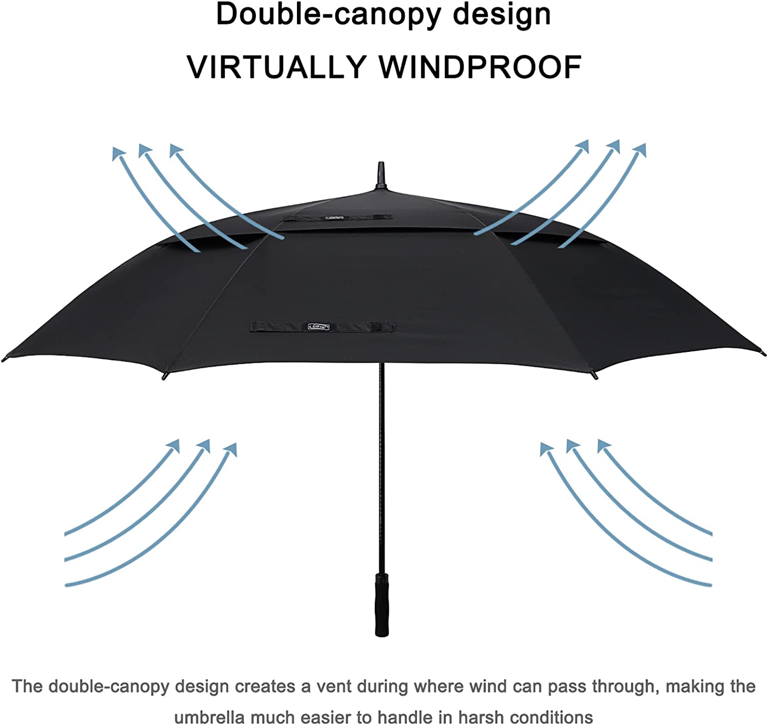 - Windproof. The double-canopy design creates a vent where wind can pass through making the umbrella much easier to handle in harsh conditions.