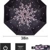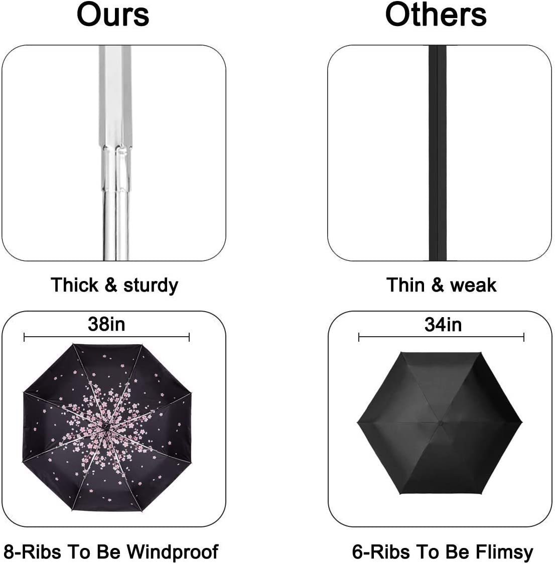 MINI & COMPACT TRAVEL UMBRELLA- This compact umbrella is only 11 oz weight 8.5-inch length yet opens to form a large 38(not 34″) canopy fitting perfectly in your makeup bag briefcase suitcase or kids backpack. It is also an ideal gift for parents friends colleagues lovers.