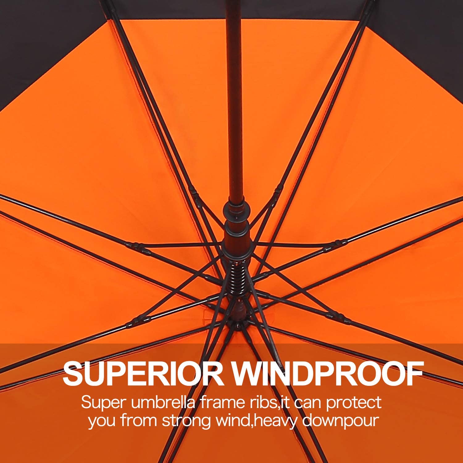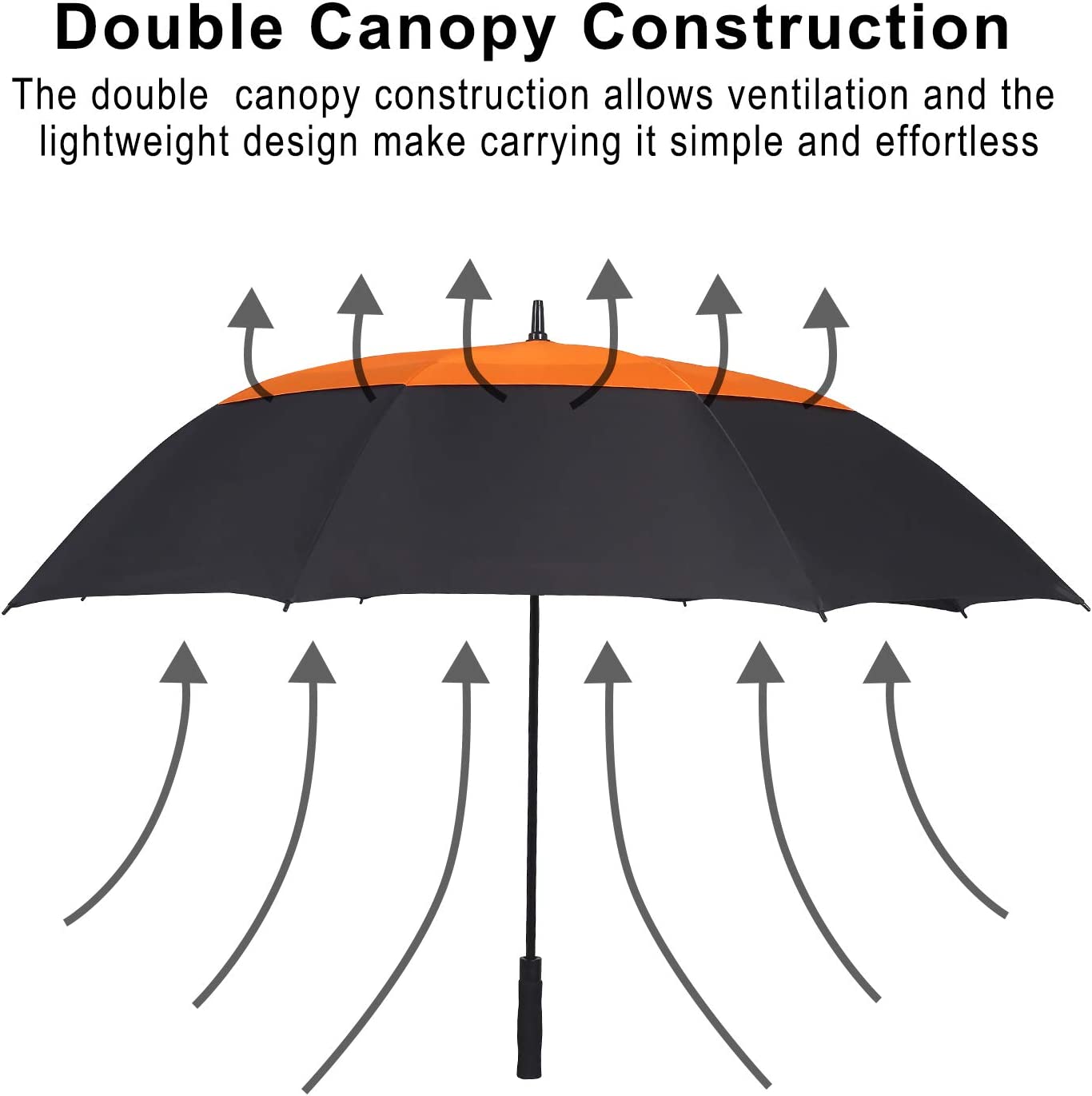 Windproof design(dual-canopy air vented) durable fiberglass ribs and a sturdy fiberglass shaft offering a robust windproof system for maximum frame flexibility in stormy conditions.
