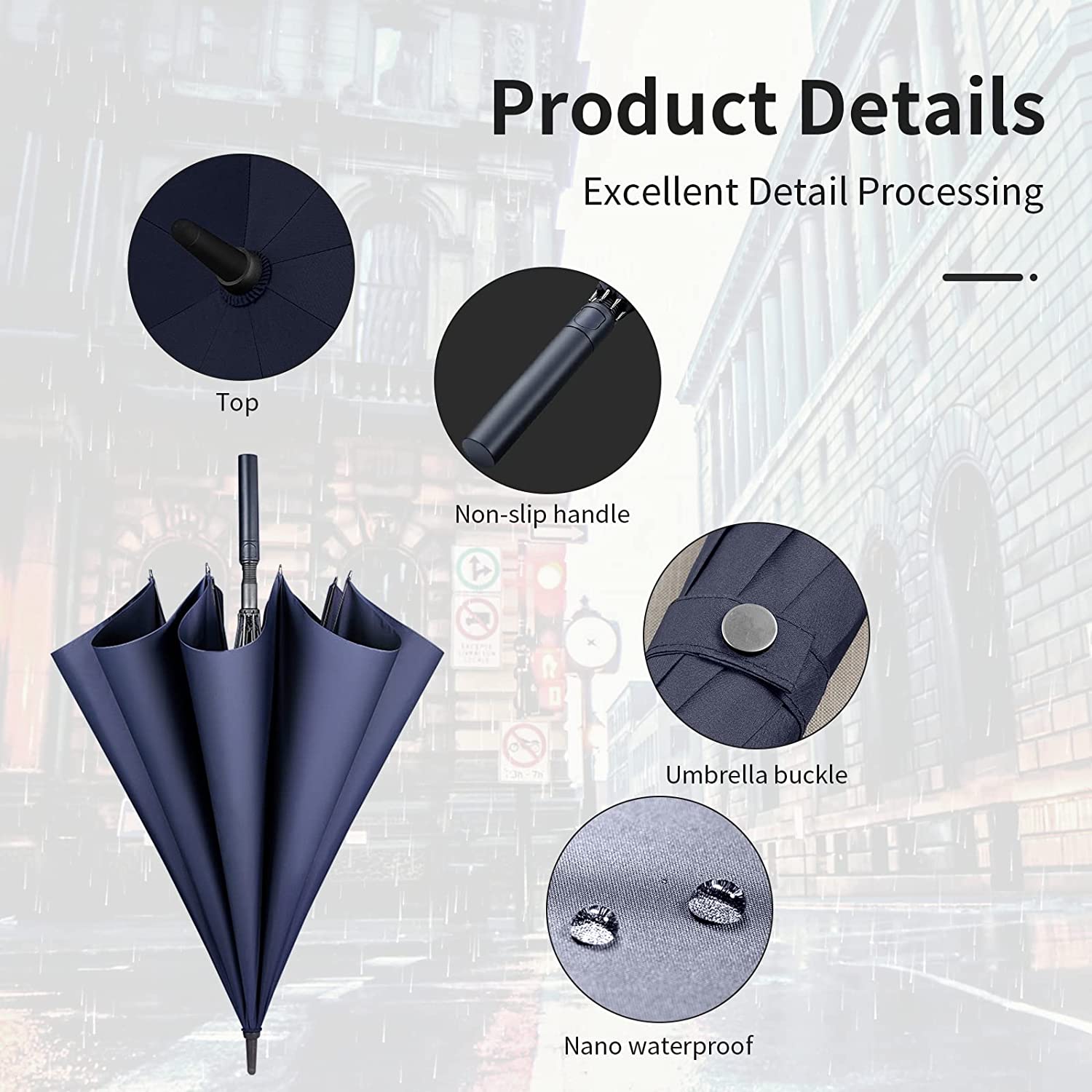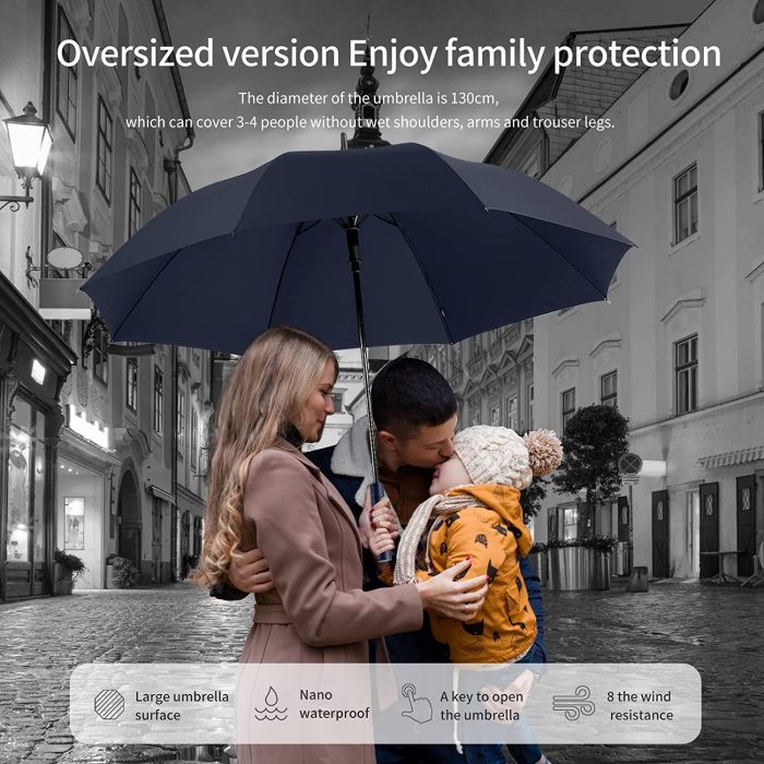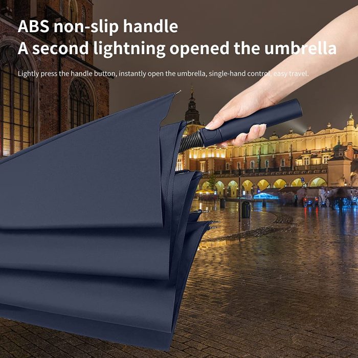 Custom umbrella windproof Golf umbrella has a fully automated open and close system for you to open quickly in a rainy day and it is designed for one hand operation. Custom umbrella Golf umbrella automatically open and close at the touch of the button. Also the comfortable handle made of Slip Resistant materials makes it comfortable to hold and easy to grip. Custom umbrella premium large windproof umbrella is a perfect choice for your golf/travel/business.
