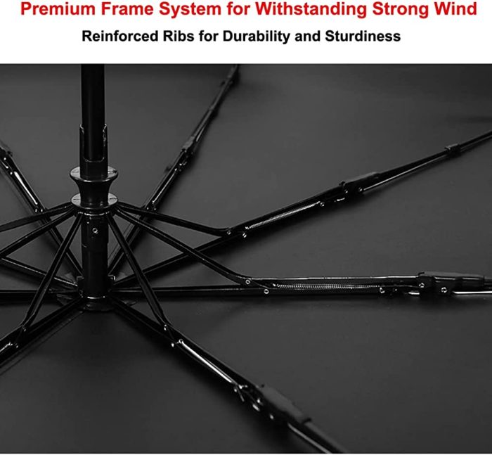 Durable Premium Frame System with 8 Reinforced Sturdy Ribs for withstanding Strong Wind and Heavy Rain.