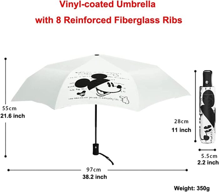 Mickey Mouse Head – White – Travel Compact Auto Folding Golf Umbrella