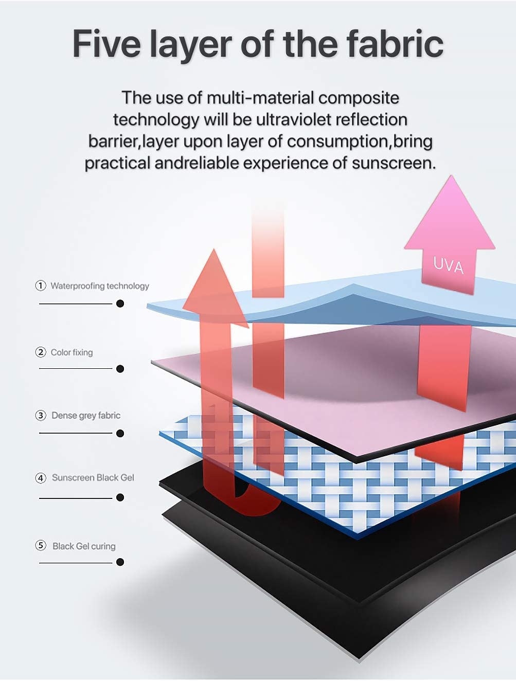 ●Waterproof and sunscreen fabric with quality black coating anti uv design for summer protect your skin.