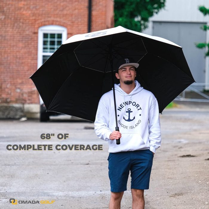 Rated #1 Golf Umbrella Coverage by MYGOLFSPY – 68” Diameter For Maximum Weather Coverage; 44 Tall”