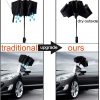 PORTABLE & COMPACT UMBRELLA – It’s 0.88 LB (about the weight of two PLUS) and only 12.79 inches when folded while opens to a large 46.5 inches canopy. This reverse umbrella is easy to store in your car your briefcases backpacks tavel bags etc. It is perfect for travel business camping fishing and daily use. Suitable for men and ladies.
