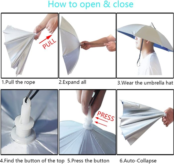 Hands Free – With oxford cloth makes the umbrella hat more durable and reflects a certain amount of heat and uv. Keep your hands free while protecting your head from rain or sun portable umbrella hat lets you could do other things with your both hands