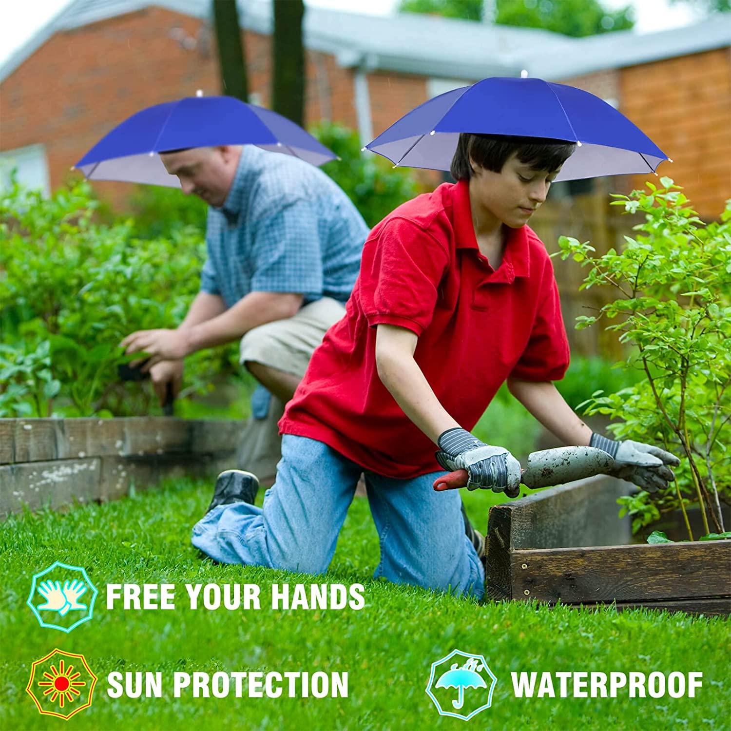 HANDS FREE DESIGN:A crazy hat… that works-yes people will stare at your funny umbrella hat.but that’s because they’ll want one too! It will free your hands while fishing golf camping hiking jogging beach sailing sports events Farming gardening or photograph shooting etc.Of course it’s also great for costume parties outdoor parties beach BBQ parties–to name a few.