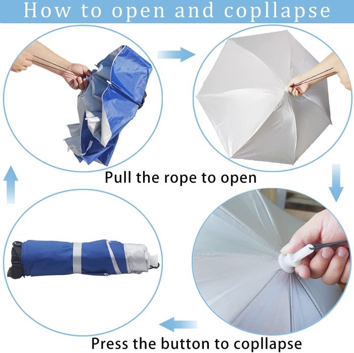 【Easy To Open And Close】 – You only need to pull the rope to open this fishing umbrella. press the button on the top of the umbrella hat to collapse it.