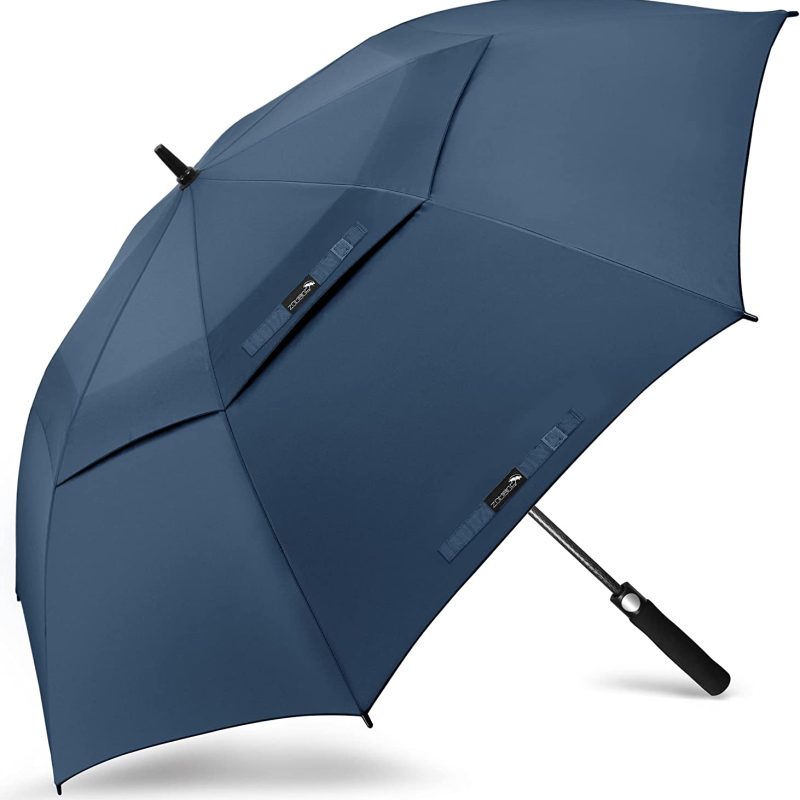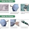 [Very Easy To Open And Close] You only need to pull the rope to open this golf umbrella. When you close it press the button on the top of the umbrella hat. The gift bag can be stored it well. After being folded the umbrella hat is small (9.8 inches 0.57lbs) and light and can be placed in a backpack. It’s very stylish and unique in design.