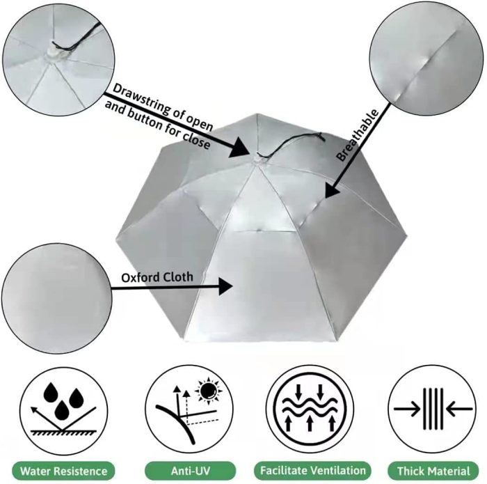 [Latest Models & Multi-Colors & Sizes] The color of the latest style design of this fishing umbrella thick Oxford cloth material enlarged size very strong and durable. 37.4 inch diameter wide enough to keep your head and arms dry or shaded whatever you’re carrying when you wear it.