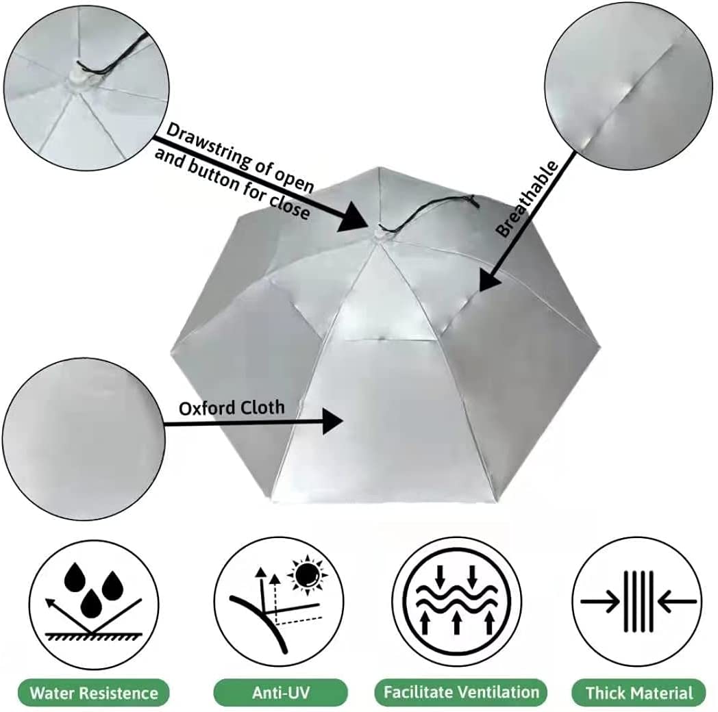 [Rainproof and UV-proof 2 in 1] The latest thickened and enlarged Oxford cloth material can protect you from sun and rain. There are 7 metal ribs that make this umbrella cap very strong. We ensure the best quality and water resistance. People will be pleasantly surprised by your funny and crazy umbrella hat that makeing everyone happy and wanting to have it.