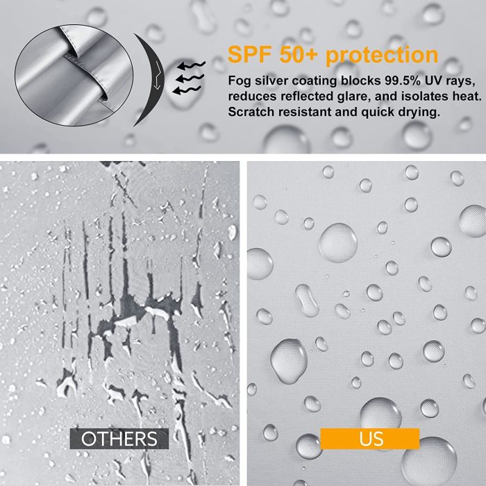 Silver UV Umbrella UPF 50+ Protection –Canopy layer designs UV protection 190T fog silver coating match inner mesh fabric reflecting heat and glare to cool you down; 50+ UPF rating to block 99% of the sun’s harmful UVA and UVB solar.