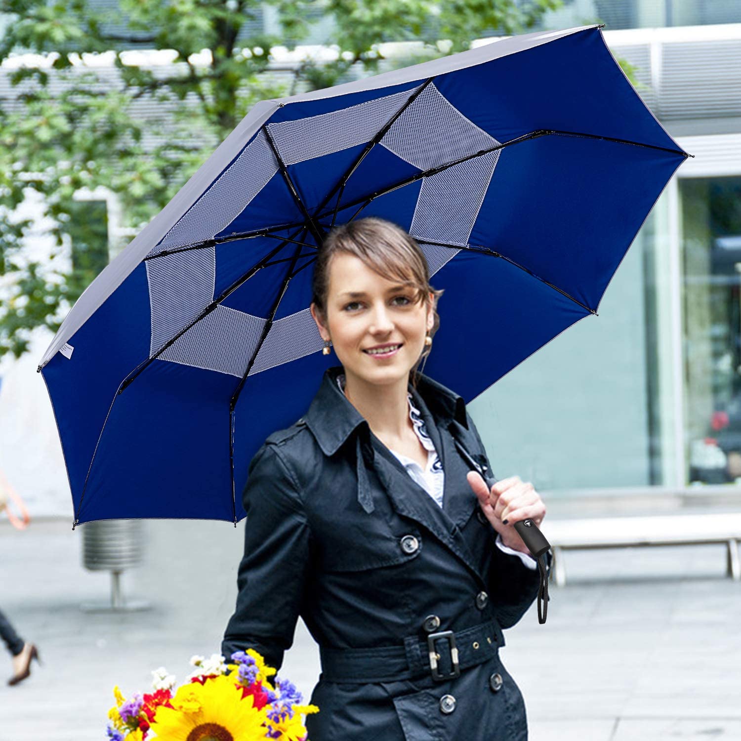 FULLY AUTOMATIC UMBRELLA: Auto open and close umbrella can handy for quick entry into a car building or tent. You can quickly open or close the travel umbrella at the press of a button. A-must-have umbrella for men women
