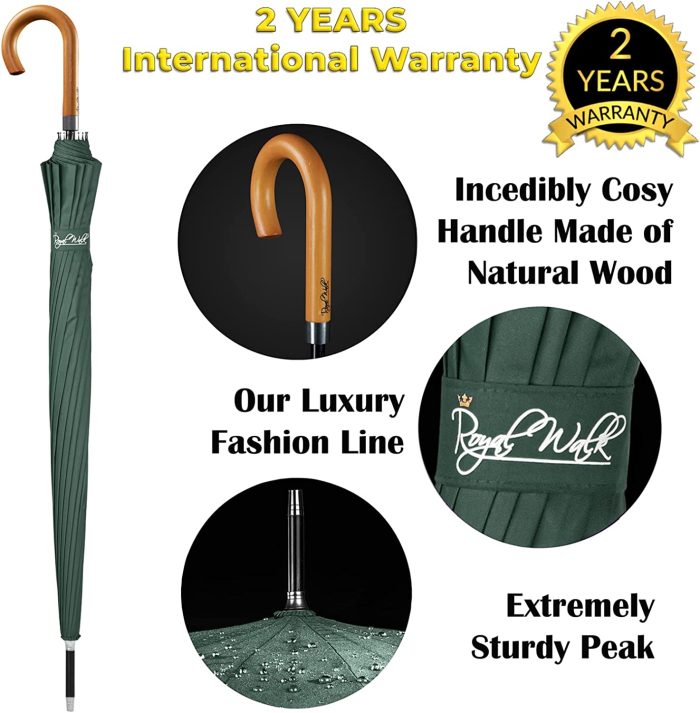 2 YEARS REPLACEMENT GUARANTEE. Every RoyalWalk umbrella comes with two years replacement guarantee against defects. If you have any questions or suggestions you are also welcome to contact our customer service.
